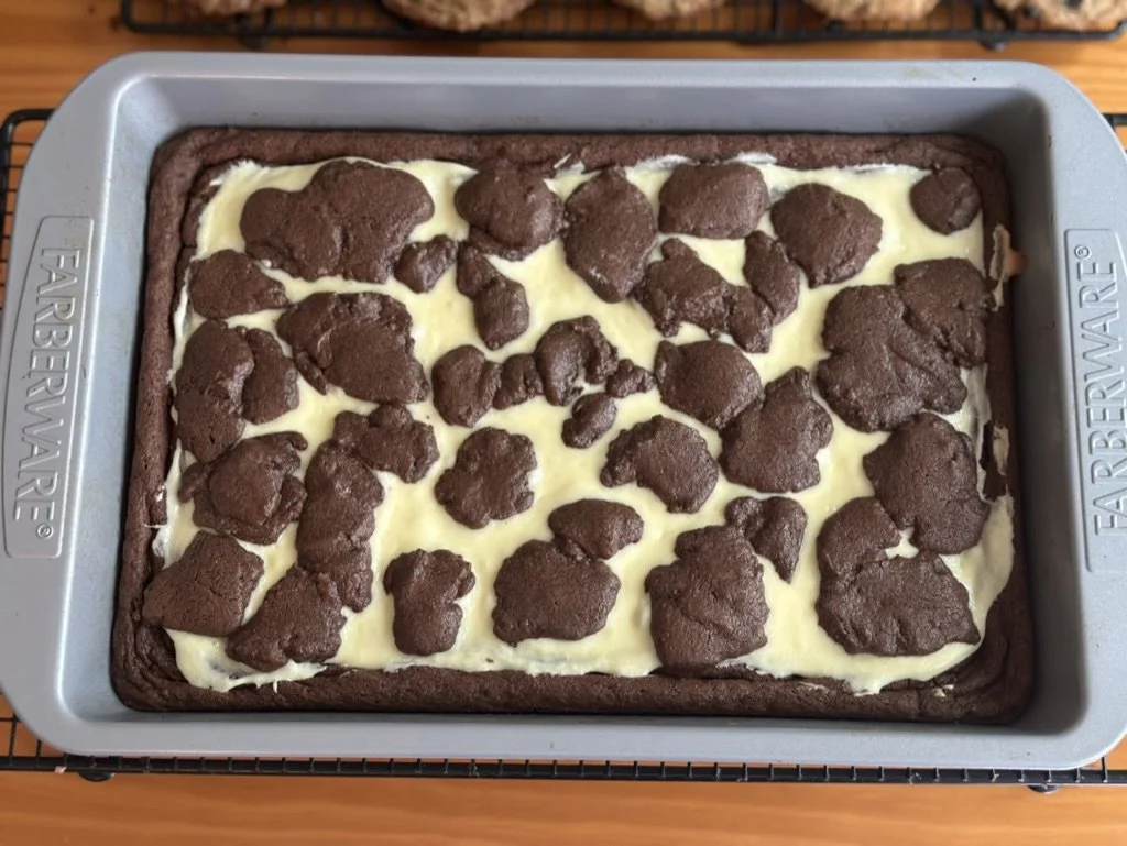 Indulge in the perfect blend of rich, fudgy brownies and creamy cheesecake with our Cowprint Cheesecake Brownies. Each bite offers a decadent chocolate base swirled with smooth, velvety cheesecake, creating a delightful contrast in flavors and textures. Perfectly portioned and freshly baked, these treats are a crowd-pleaser for any occasion or a special everyday indulgence. Experience a unique dessert that captures the best of both worlds —treat yourself to an order of Cowprint Cheesecake Brownies today!